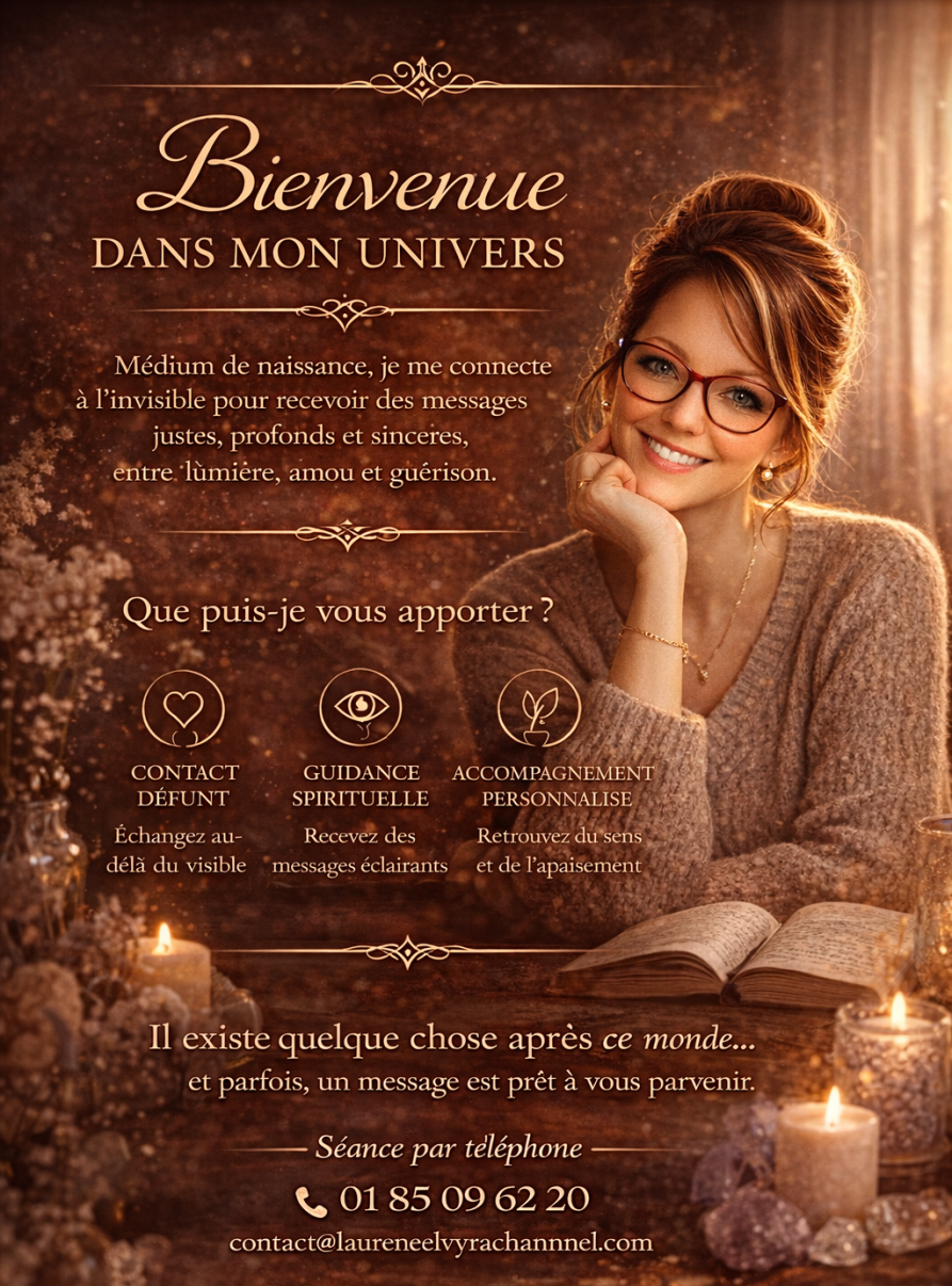 Médium reconnue, elle met sa capacité de connexion au service de celles et ceux qui ressentent l’appel de comprendre, de recevoir… et d’avancer.