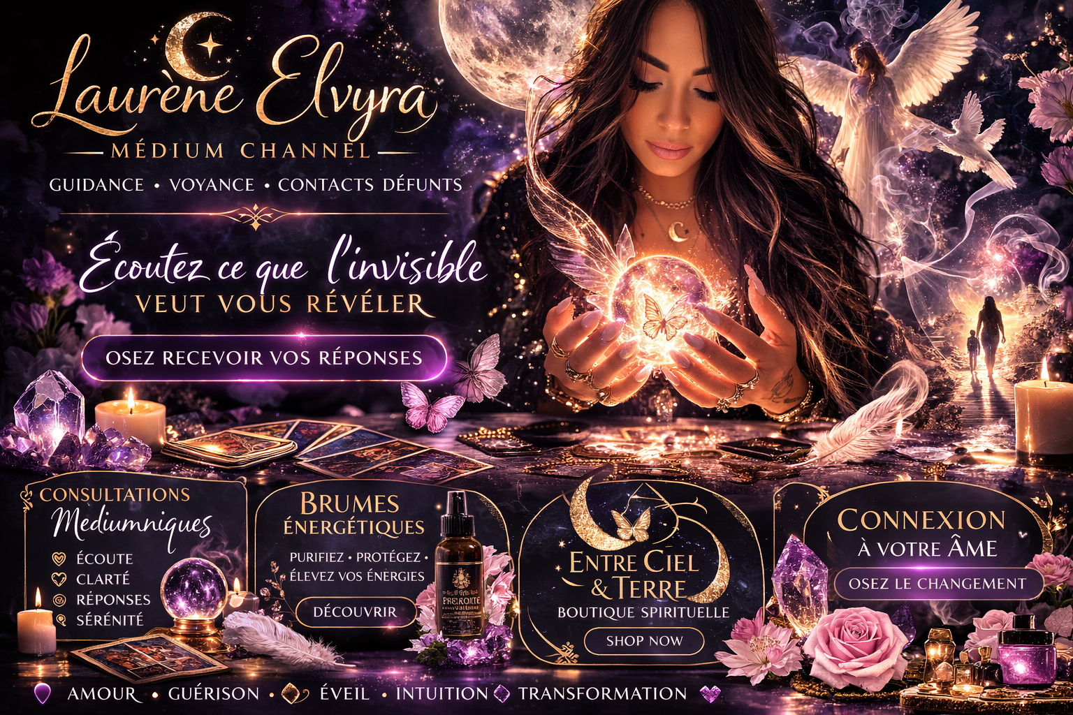 Je suis Laurene Elvyra, médium et channel, et j’accompagne les personnes qui souhaitent recevoir des réponses, comprendre leur chemin de vie et retrouver une direction intérieure.