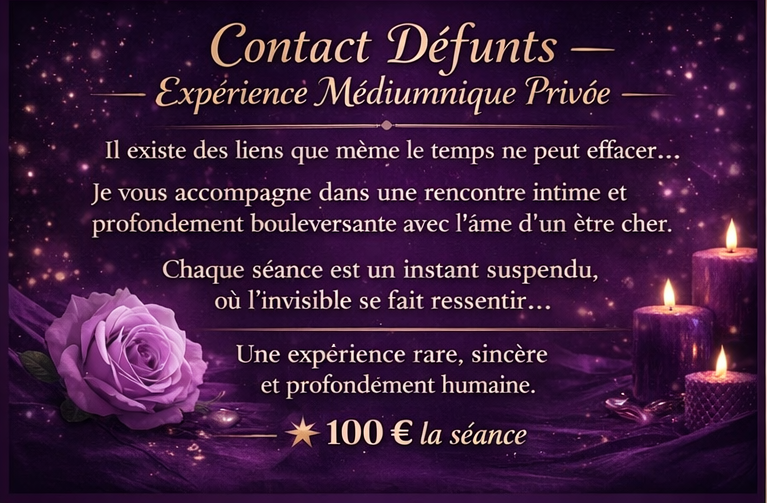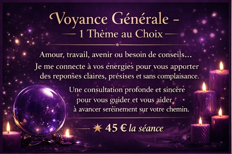 Grâce à mes perceptions médiumniques et à la canalisation, je vous transmets des messages qui peuvent vous aider à éclairer une situation, prendre une décision ou avancer avec plus de sérénité.